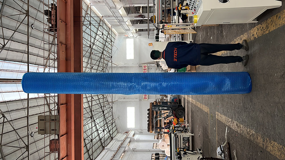 在气泡膜制造领域,产品的宽度规格往往是衡量企业技术实力的重要标杆。当巴西客户提出定制宽度为 4.2 米的蓝色气泡膜泳池布时,整个行业都感受到了前所未有的压力。这一尺寸在气泡膜制造行业属于前所未有的超级宽度规格,对材料均一性及结构稳定性构成了重大技术挑战。而众锐公司(ZTECH)凭借着在气泡膜生产领域的深厚积累和先进的气泡膜机,毅然接下了这个艰巨的任务,展现了我们强大的技术自信和实力。